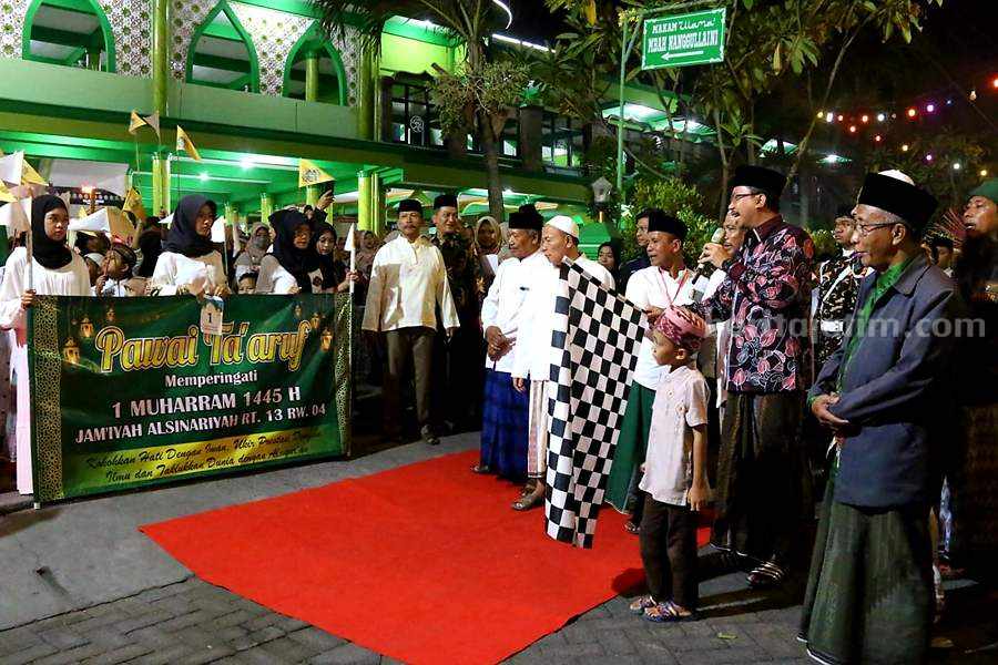 Pawai ta’aruf dalam rangka memperingati Tahun Baru Islam 1 Muharram 1445 H di Desa Siwalanpaji, Buduran, Sidoarjo disambut meriah warganya, Sabtu malam.