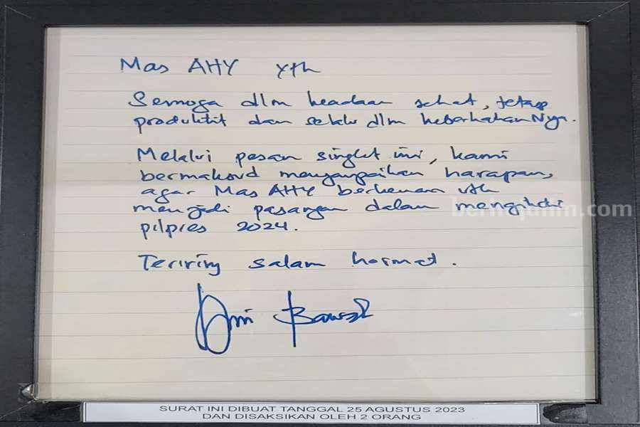 Surat itu ditujukan ke Ketum Demokrat Agus Harimurti Yudhoyono (AHY), berisikan harapan Anies agar AHY berkenan menjadi pendampingnya di Pilpres 2024..