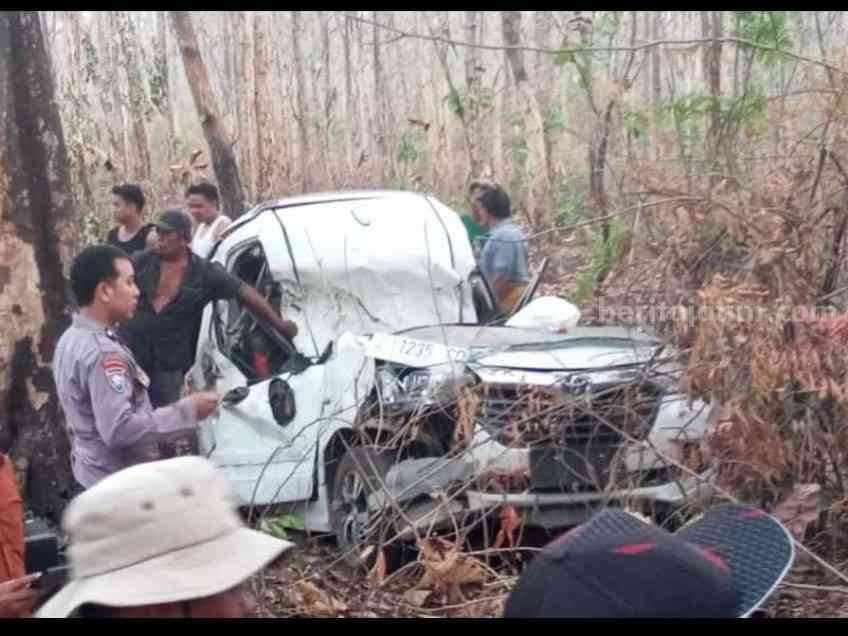 Kecelakaan tunggal terjadi di wilayah Kabupaten Bojonegoro. Sebuah mobil jenis Toyota MPV ringsek setelah menabrak pohon jati. Kecelakaan terjadi di jalan