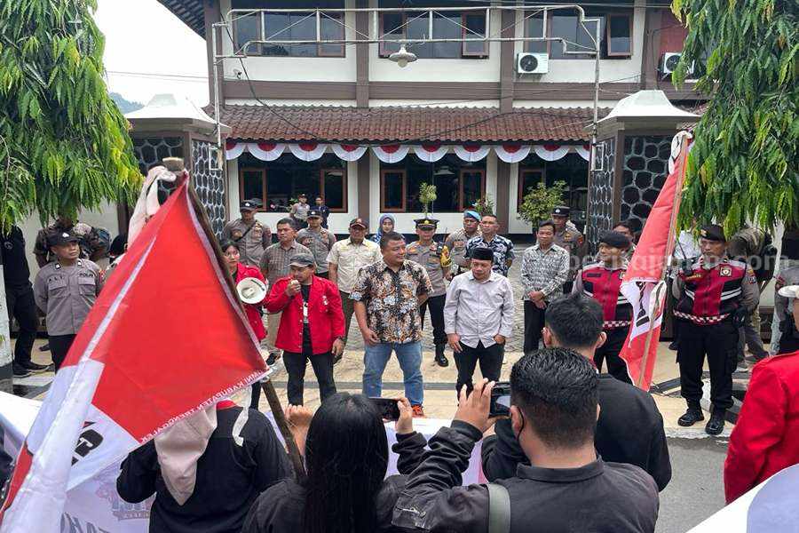 GMNI Trenggalek menggelar aksi damai di depan Kantor DPRD Trenggalek sebagai bentuk kekecewaan atas kinerja Bupati Trenggalek, Mochamad Nur Arifin.