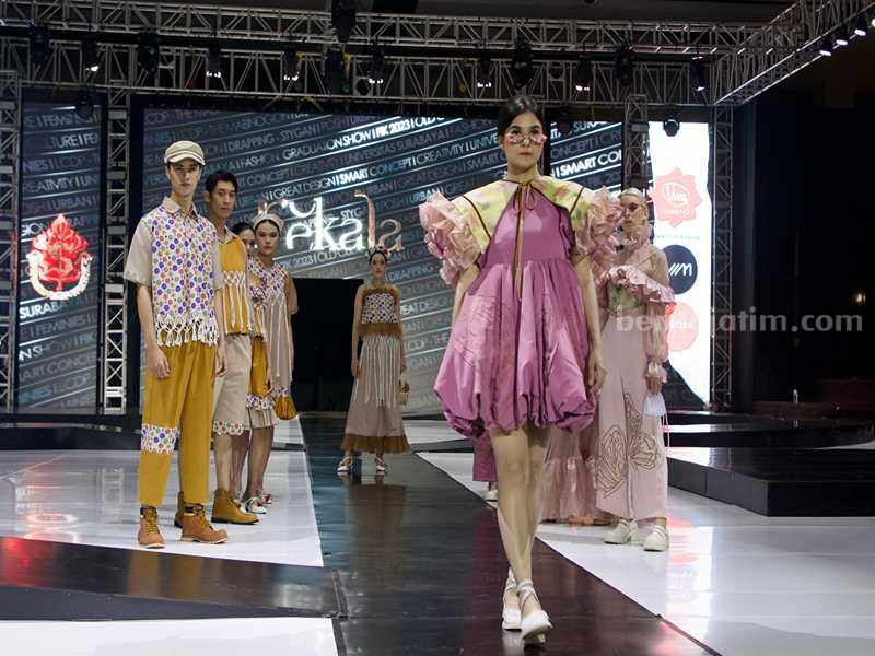 Desainer Universitas Surabaya (Ubaya) memamerkan karya busananya di Graduation Show Ubaya 2023. Mereka membuat koleksi berkonsep