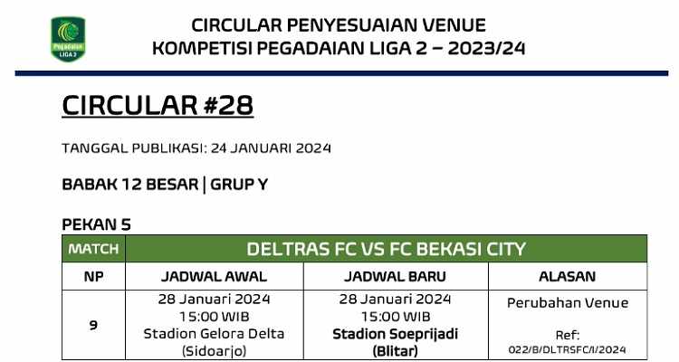 Surat Pindah Laga Home Deltras FC di Stadion Soeprijadi Blitar Resmi Keluar. 👇