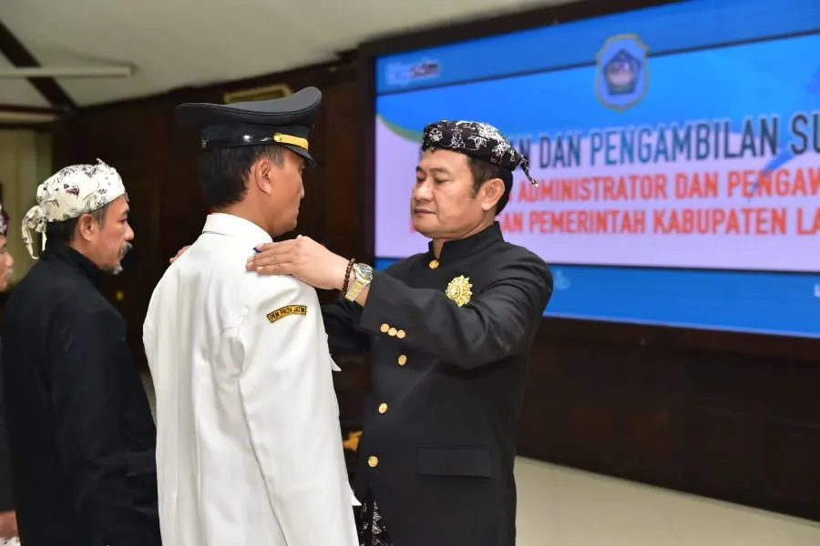Bupati Lamongan Yuhronur Efendi melantik Rakhmat Hidayat jadi Camat Sukorame baru di Pendopo Lokatantra, Jumat (26/1/2024). Rakhmat mengisi kekosongan jabatan