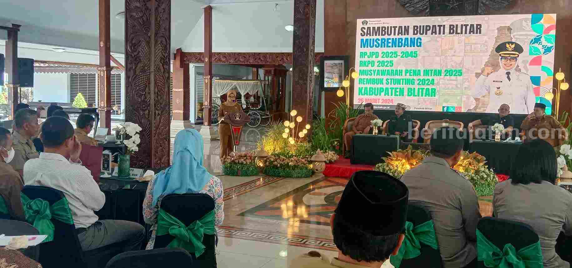 Bupati Blitar, Rini Syarifah membuka musyawarah perencanaan pembangunan (Musrenbang) RPJPD 2025-2045 dan RKPD 2025 di Pendopo Ronggo Hadi Negoro.